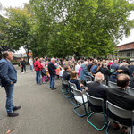 Harald und Gerd trafen am Samstag, den 21.06.2025 um 09:00 Uhr auf dem Dorfplatz in Latendorf ein und bauten unseren Stand auf. Wieder einmal zeigte sich, wie praktisch unser neues Fahrzeug ist. Mit wenigen Handgriffen hatten wir einen Sonnenschutz und eine Präsentationsfläche.